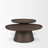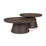 Each table is finished in a rich, deep walnut tone that highlights the natural grain of the wood. The smooth silhouette and rounded contours make it the perfect companion for contemporary sofas, sectionals, or lounge chairs.